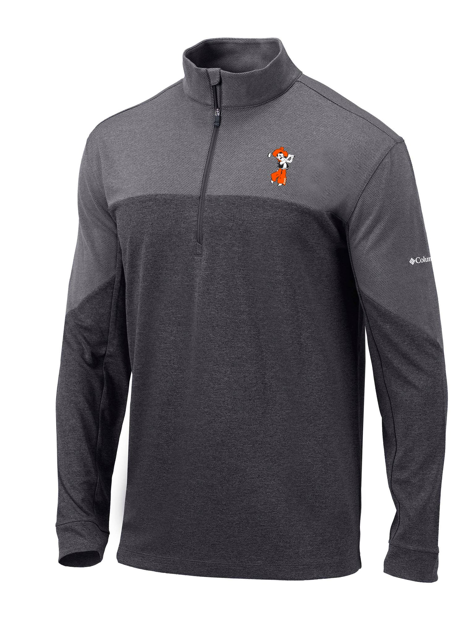 This is a great lightweight layer featuring a waffled texture and quarter-zip collar.
