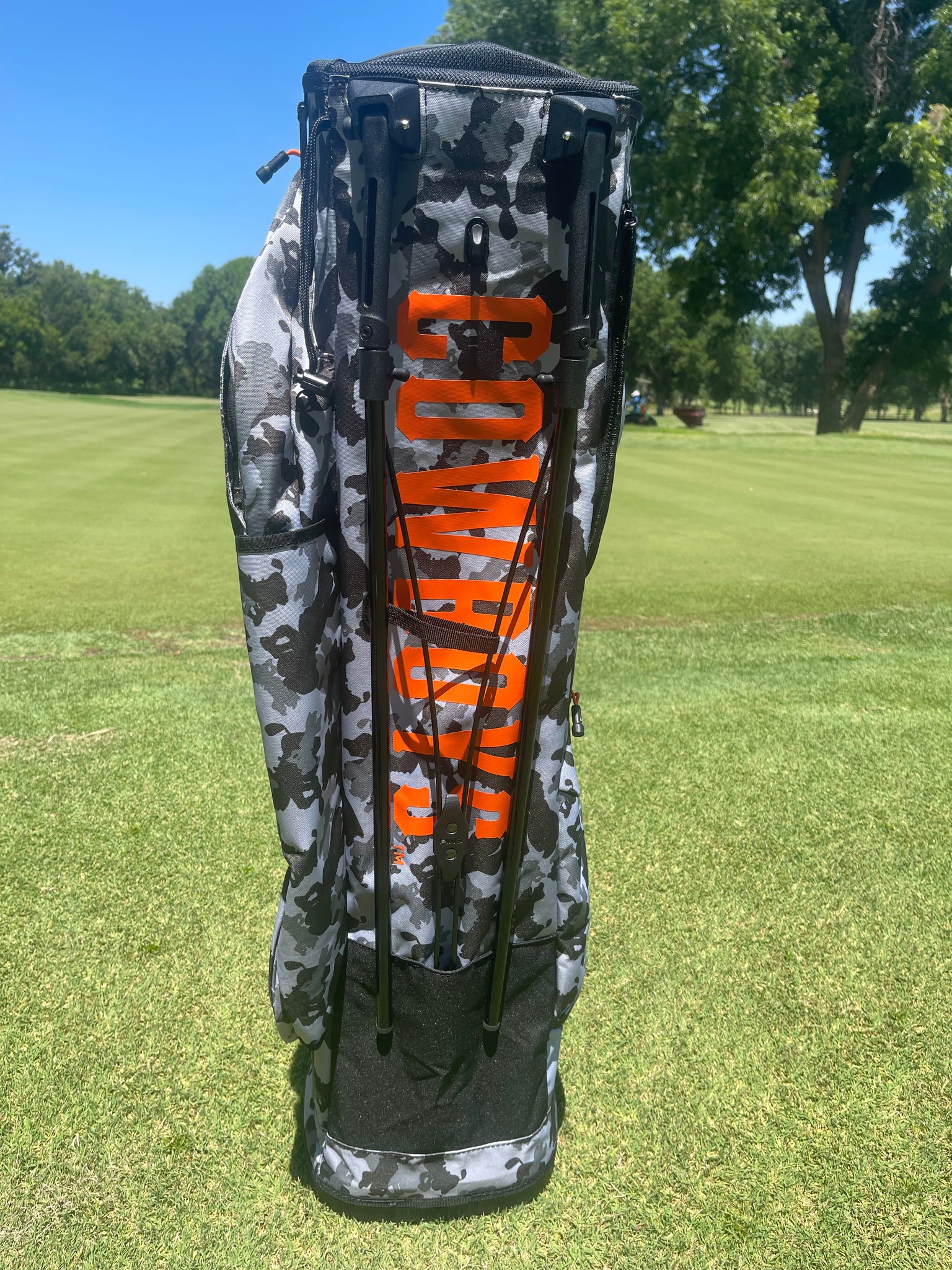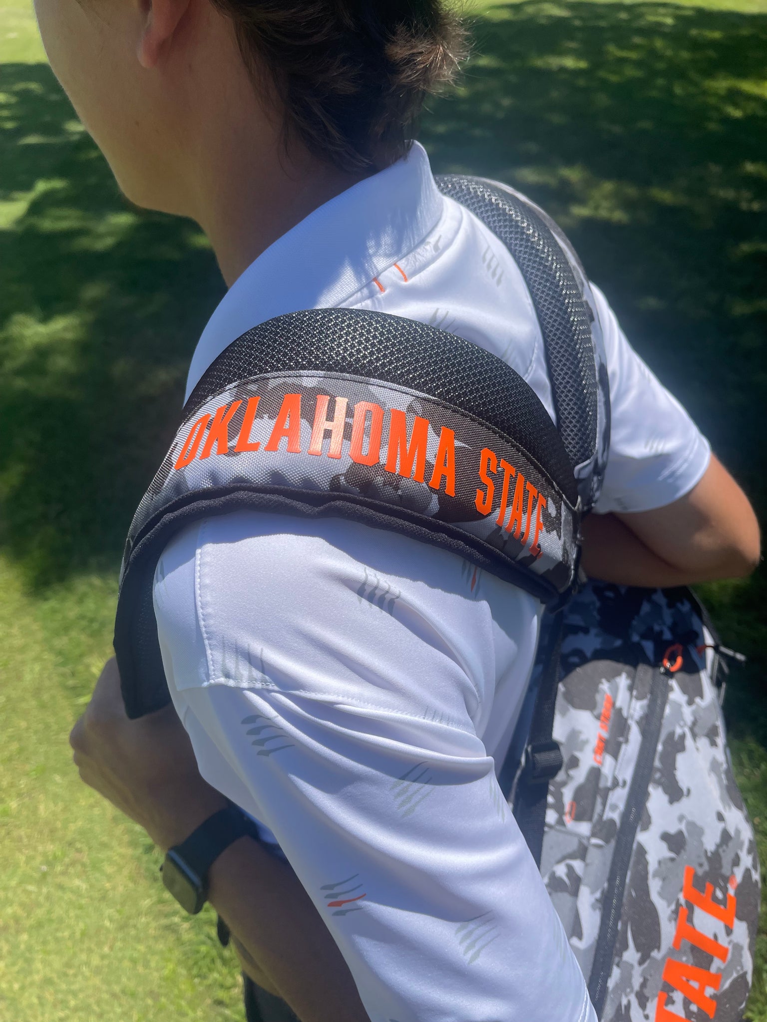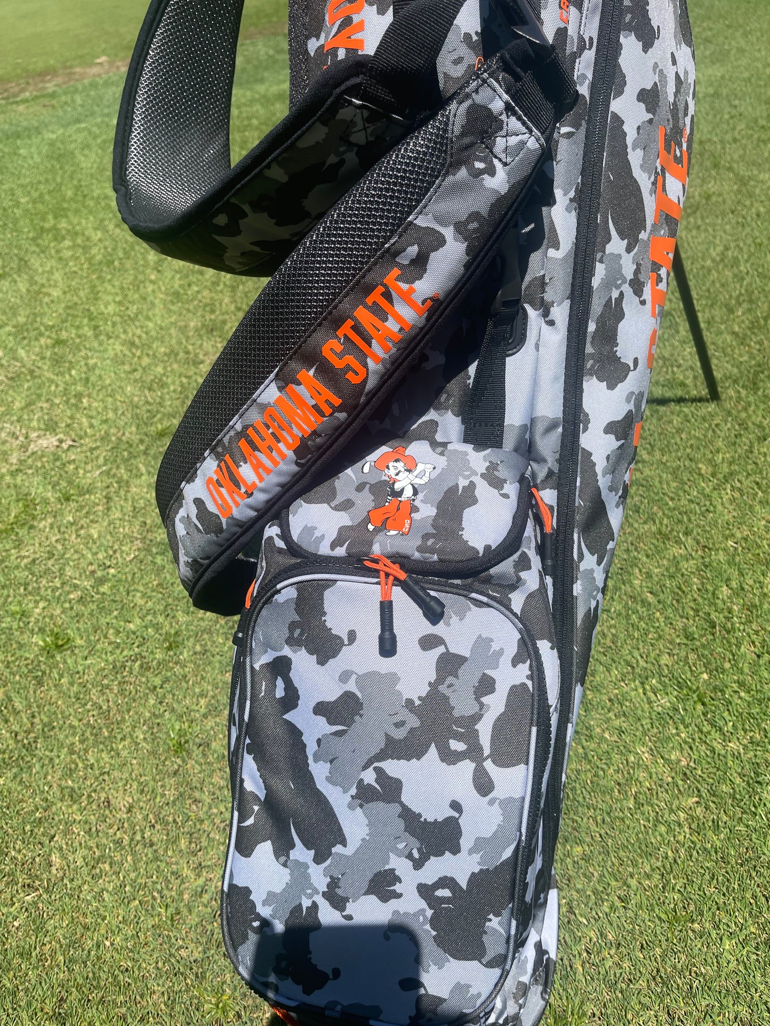 - "Oklahoma State" on bag strap